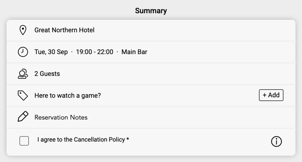 when making a booking make sure you click “+Add” next to “Here to watch a game?” as shown above